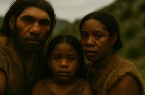 Reconstrucción mediante IA de una familia mixta de neandertales y Homo sapiens.( )