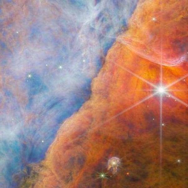 NEBULOSA DE ORION | La famosa región de formaciones de estrellas se puede ver a simple vista como un punto en el cielo. Una nave espacial que viajara a la velocidad de la luz (casi 300.000 km por segundo) tardaría algo más de cuatro años en atravesar este escenario captado por Webb.