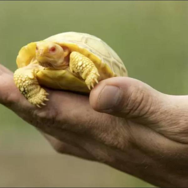 Uno de los animales más extraños jamás visto llegó al mundo en un zoológico suizo: una tortuga gigante de Galápagos albina.