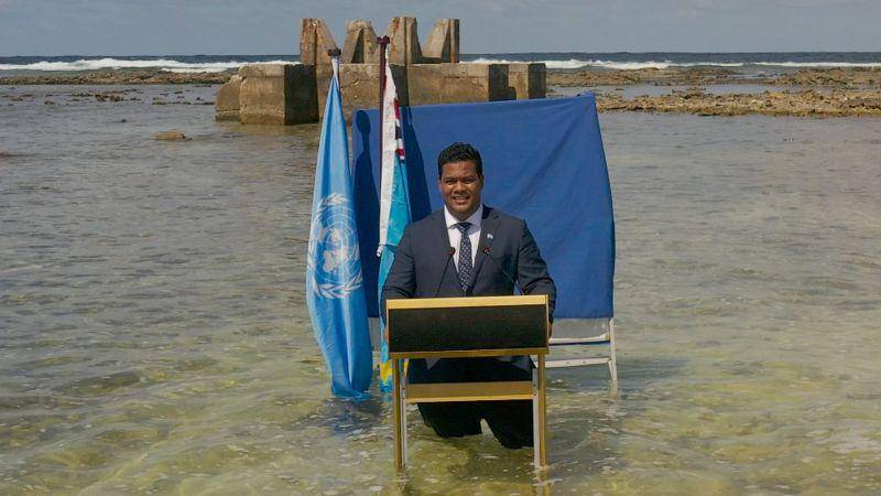 El mensaje de Simon Kofe a la COP26: "Nos estamos hundiendo, pero lo mismo le pasa a todo el mundo".( )