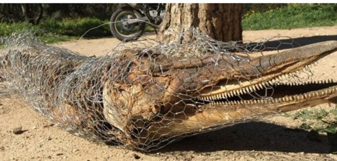 Sin embargo, explicó Rey, el delfín "no debía llevar mucho tiempo enterrado, porque el alambre que lo envolvía (una especie de malla metálica) no estaba oxidado".