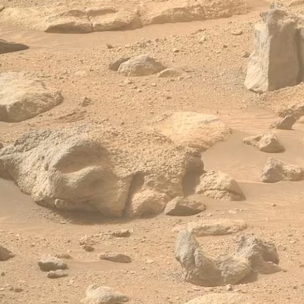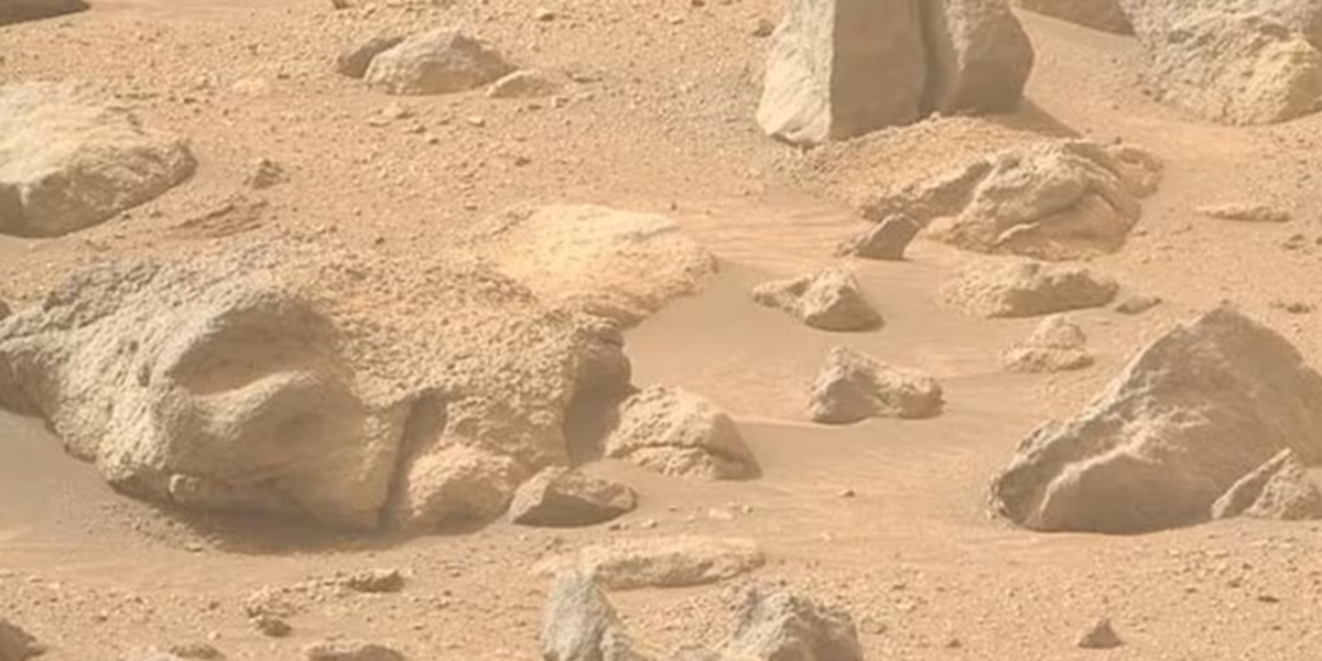 La imagen muestra una roca que parece tener las facciones de un rostro humano, con detalles que asemejan ojos, nariz y boca. Este peculiar hallazgo ha generado debate sobre la tendencia humana a identificar patrones conocidos en objetos inanimados, especialmente en entornos extraterrestres.