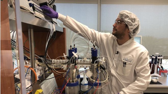 La corresponsal de la BBC en temas de salud global, Tulip Mazumdar, visitó el laboratorio Inovio en San Diego (EE.UU.), donde los científicos trabajan con una tecnología de ADN relativamente nueva para desarrollar una potencial vacuna: "INO-4800" -como se le llama provisionalmente- con planes para someterla a pruebas en humanos en cuatro o cinco meses.
