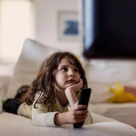 Foto referencial niña viendo televisión.