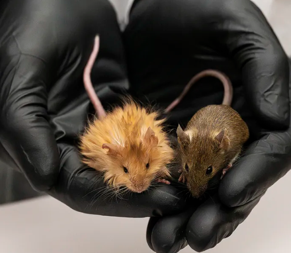 Este ratón, aunque sigue siendo un roedor común, fue modificado mediante genéticamente para expresar pelaje similar al de los mamuts lanudos, con un pelaje grueso, largo, rizado y adaptado al frío extremo.