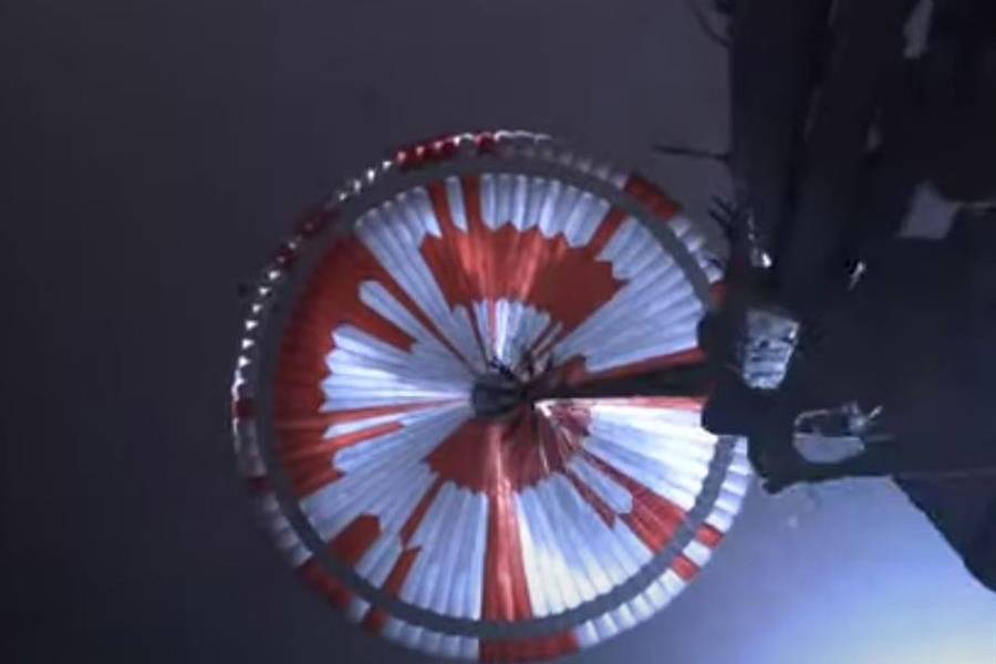 El Perseverance descendió hasta la superficie marciana sujetado por una