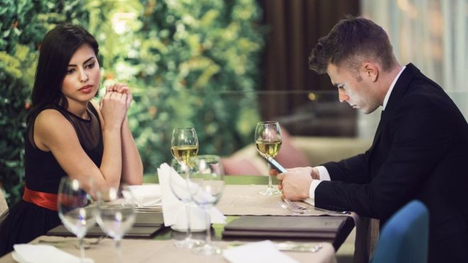 "Siempre deberían estar apagados y fuera de vista durante comidas, reuniones y fiestas", le dice a la BBC la experta en protocolo Diana Mather.
