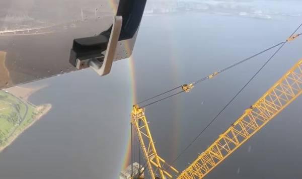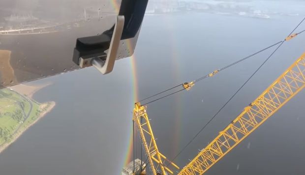 En un video publicado en YouTube, se ve al operador estar sobre una grúa de rascacielos en el centro de Lakhta, San Petersburgo, Rusia. Este hombre pudo grabar un arcoíris completamente circular, descartando así su forma de arco.