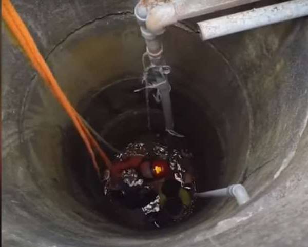 Captura de video que muestra el momento del rescate desde el interior del pozo de agua.