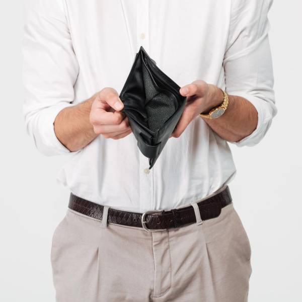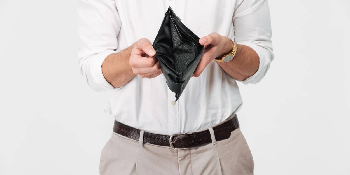 Un hombre con una billetera vacía.( )