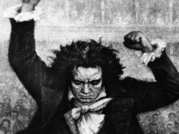 De espaldas al público, Beethoven dirigió a los músicos con una pasión desenfrenada, sacudiendo su cuerpo y agitando sus brazos al compás de la música.