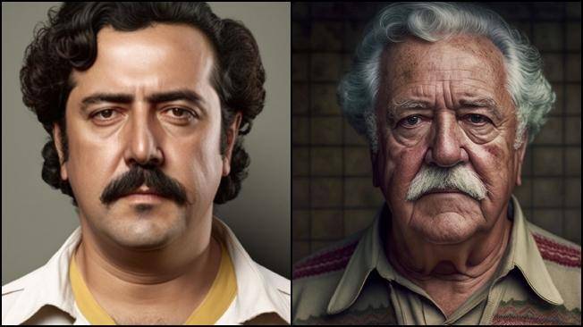 En las fotografías que generó la IA, Escobar luce con su singular cabellera y muchas canas que llegarían no solo ahí sino también a su bigote. La vejez del narcotraficante sería notoria.