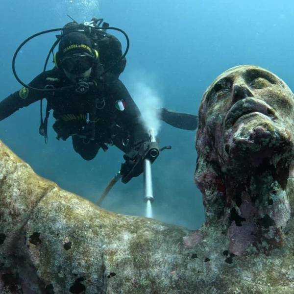 La emblemática escultura submarina italiana fue sometida a su limpieza anual para preservar su estado