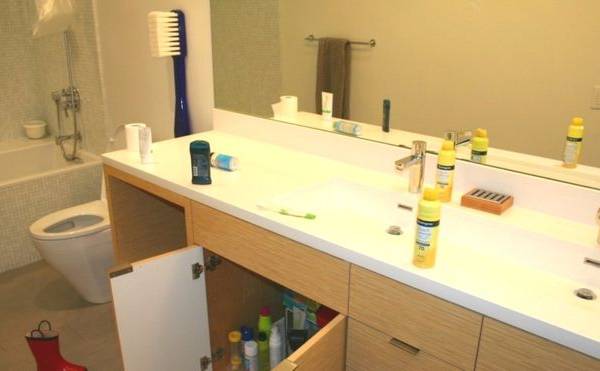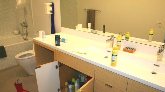 Pero, si te tomas un poco más de tiempo y miras con atención, descubrirás uno gigante, en posición vertical entre el espejo y el inodoro.