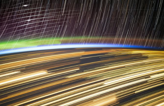 A veces usaba hasta cinco cámaras simultáneamente desde el módulo cúpula de la EEI, donde siete ventanas ofrecen vistas únicas de la Tierra y el cosmos. Algunas de sus fotos muestran líneas de luz causadas por barcos pesqueros, incendios forestales o satélites cruzando el cielo.