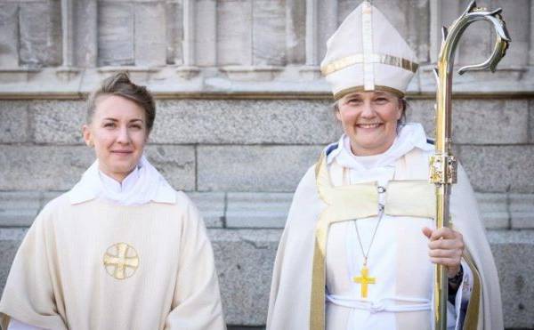 Hedvig Astrom junto a la obispa Karin Johannesson tras la ceremonia de ordenación celebrada en junio.