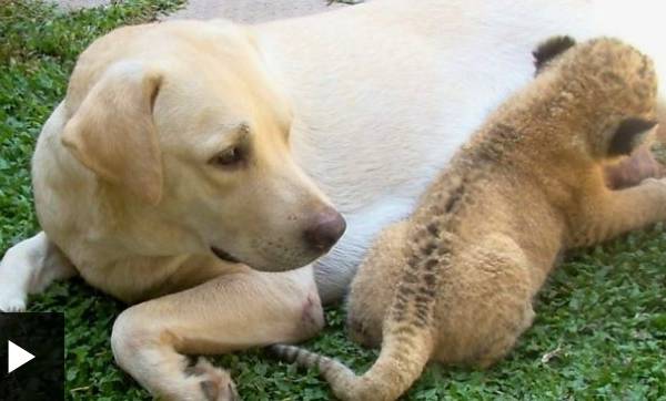 El pequeño león criado por una perra tras ser rechazado por su mamá leona.