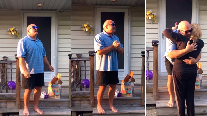El hombre de 66 años pudo distinguir los colores gracias a unas gafas especiales.
