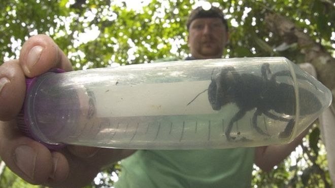 Junto a un equipo de investigadores, Bolt recorrió Indonesia el pasado mes de enero para encontrar y fotografiar a la abeja,