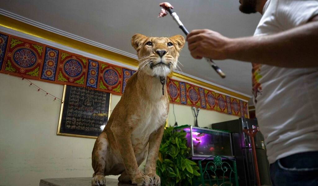 En lugar de una pista de circo, su sala es su escenario. De antemano publicó un video en internet en el que aparecen los leones haciendo trucos en el interior de su vivienda, dado que Egipto impuso restricciones para limitar la propagación del nuevo coronavirus, entre ellas un toque de queda nocturno.
