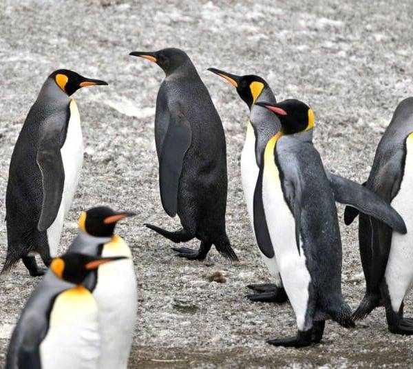En la isla Georgia del Sur, en el Atlántico Sur el fotógrafo Yves Adams, conocido por fotografiar fenómenos extraordinarios en la naturaleza, captó a un pingüino rey (Aptenodytes patagonicus) completamente negro entre sus congéneres, cuyo habitual plumaje es blanco y negro.
