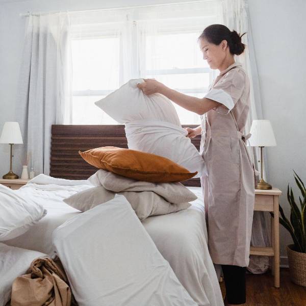 Imagen referencial: Personal de limpieza cambiando ropa de cama. ( )