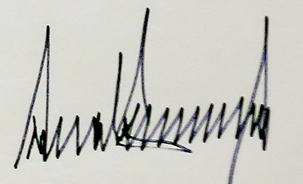 Para Sandra Cerro, grafóloga y perito calígrafo, los principales rasgos de estilo de la firma del mandatario estadounidense que definen su personalidad son las mayúsculas iniciales altas con respecto al cuerpo central, que es sobrealzado. La forma en general de la rúbrica es bastante angulosa, "marcando lo que llamamos 'dientes de sierra', que son esos ángulos tan pronunciados".