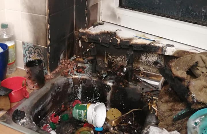 Así quedó parte de la cocina de la casa afectada. Foto: Internet.