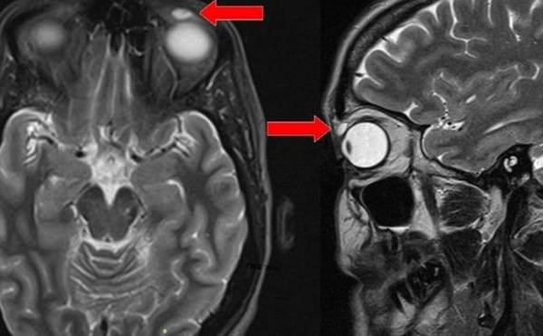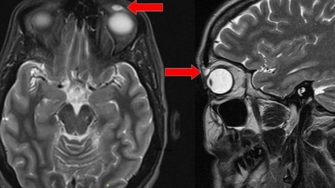 Una resonancia magnética mostró el quiste sobre el ojo de la mujer.