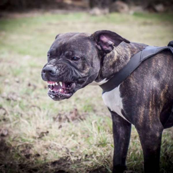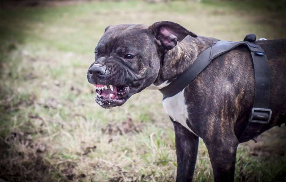 El Staffordshire bull terrier se lanzó sobre el cuello de su dueño.