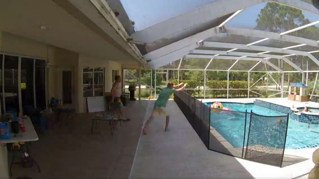 Su hijo de un año y medio ingresó al ambiente de la piscina por la puerta de la cerca de seguridad y cayó al agua tras perseguir una pelota inflable, según se ve en el video colgado en Facebook.