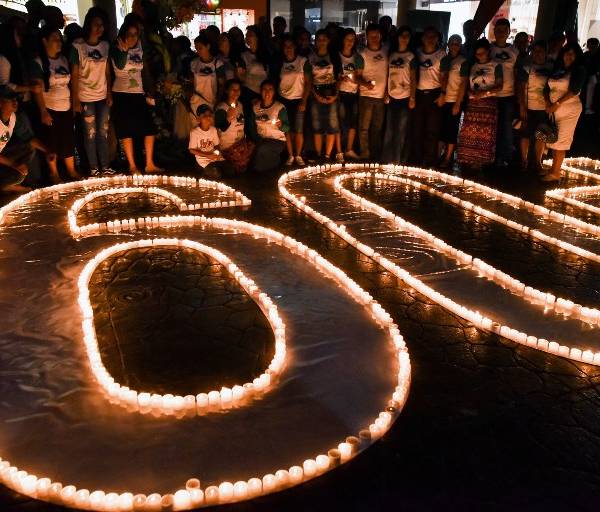 Y en Cali, la tercera ciudad de Colombia, activistas encendieron velas para formar el signo "60+".