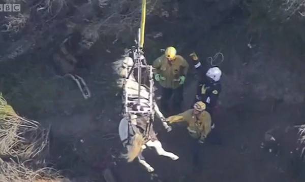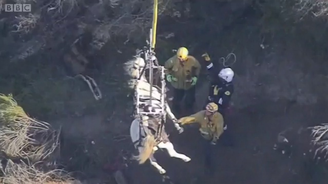 Aunque estuvo sedado durante el operativo, el caballo parece satisfecho de poder volar.