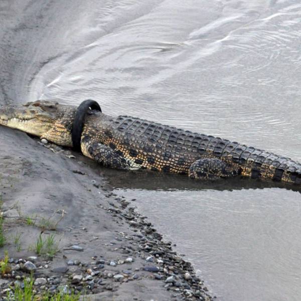 Indonesia: Dan recompensa por quitar llanta del cuello de cocodrilo