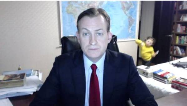 Todo parecía normal. Era el típico informe de un corresponsal desde el exterior. El periodista Robert E. Kelly hacía un análisis de la crisis en Corea del Sur tras la destitución de la presidente Park Geun-hye, involucrada en un escándalo de corrupción.