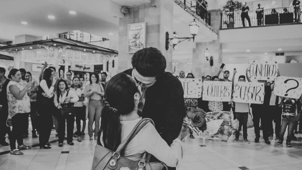 Edward estuvo preparando la sorpresa desde hace un mes, tras 5 años de noviazgo, decidió que ya era el momento de sellar su amor. ¿Te lo esperabas? Para nada, dijo Lupita, pero “me pareció extraño porque él suele irme a ver al trabajo, pero esta vez dijo que no podía ir”. “Quería algo que ella se sorprenda de verdad, si no llora no le pido la mano, me dije”, comentó el joven novio. Ambos son compañeros de universidad y estudian el último semestre de Marketing.