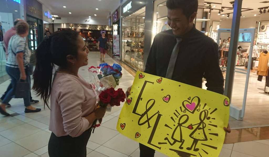 Eran las 19H30 del 16 de mayo de 2018, cuando Lupita ingresaba al centro comercial, en compañía de su mejor amiga, quien la llevó directamente al punto de información. Allí recibió el primero de una serie de detalles: una rosa roja con un papel que decía: esta es una noche de sorpresas. Continuó caminando y en cada isla le entregaban una rosa hasta que llegó a la parte central, a la altura del local de telefonía móvil donde trabaja una amiga del colegio.