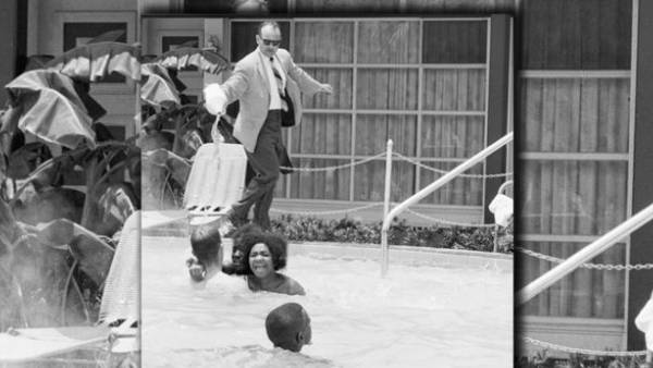 GETTY IMAGES Uno de los puntos álgidos de las protestas se vivió en ese mismo motel una semana más tarde, el 18 de junio, cuando un grupo de activistas blancos y negros se lanzó a la piscina del establecimiento en medio de una fuerte presencia policial y de periodistas.