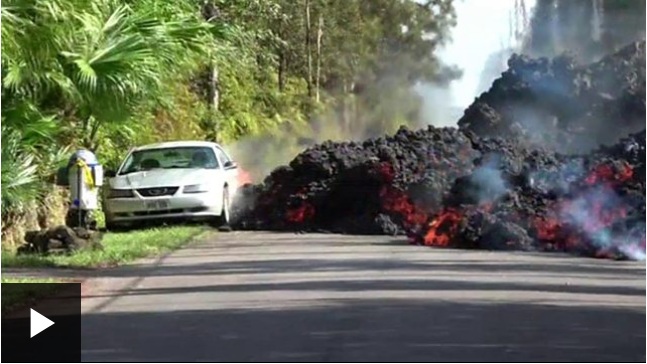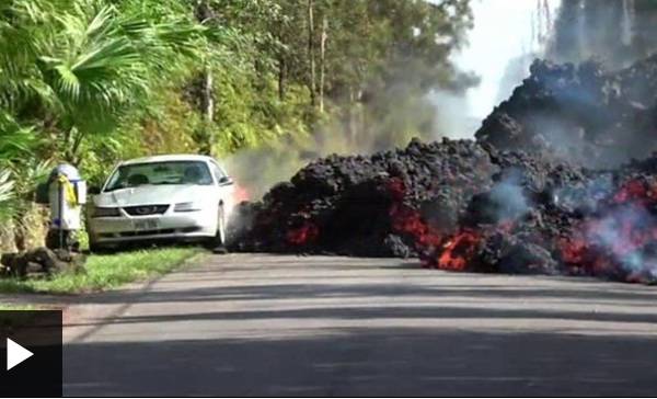 El momento en que la lava del volcán Kilauea engulle un auto en Hawái