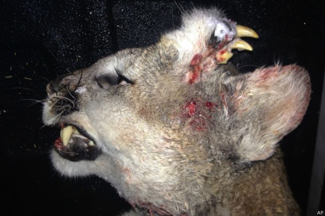 "El león de montaña tenía dientes bien formados y lo que parecieran ser pequeños bigotes en el lado izquierdo de la frente del animal", se lee en el comunicado que el departamento para la caza y la pesca de Idaho emitió recientemente.
