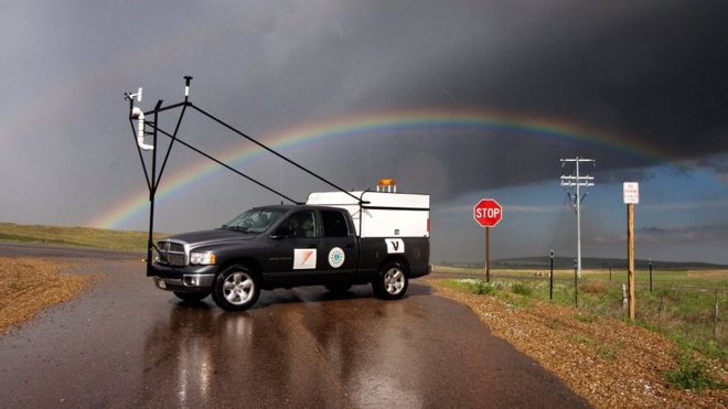 Los especialistas utilizan camiones "Doppler on Wheels" del Centro para la Investigación de Clima Severo, de la Universidad de Colorado, Estados Unidos que llevan los radares para medir la intensidad de las tormentas.
