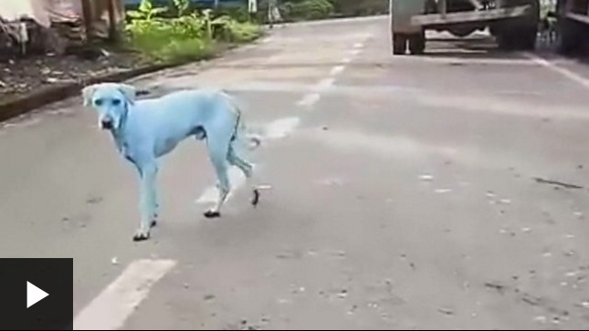 Los activistas en defensa de los animales creen que la extraña apariencia de los perros callejeros se debe a que una de las fábricas vertió tintes en el río de esa localidad, Kasadi.