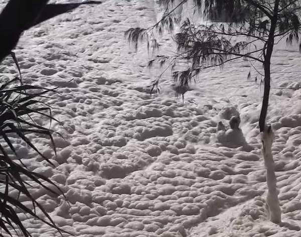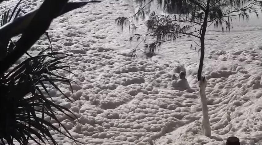 Las masivas tormentas en Australia generaron una cantidad impresionante de espuma marina en la costa dorada en Queensland.
