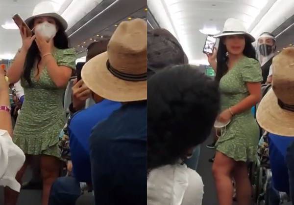 Después, llegan varios hombres, que parecen ser de la aerolínea. Entonces, Lady COVID comienza a pelear con su compañera de asiento. Pasa un tiempo hasta que, al parecer, los hombres logran convencerla de bajarse.