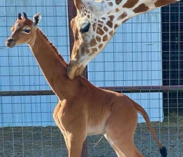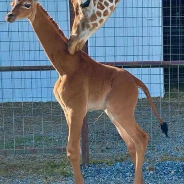 El pasado 31 de julio nació una jirafa en el zoológico de Bright, Tennessee que, a diferencia de toda su manada, esta no tenía manchas. El animal de 1,80 metros, que pertenece a la especie de jirafa reticulada (también conocida como somalí), fue mostrado al público este mes de agosto.