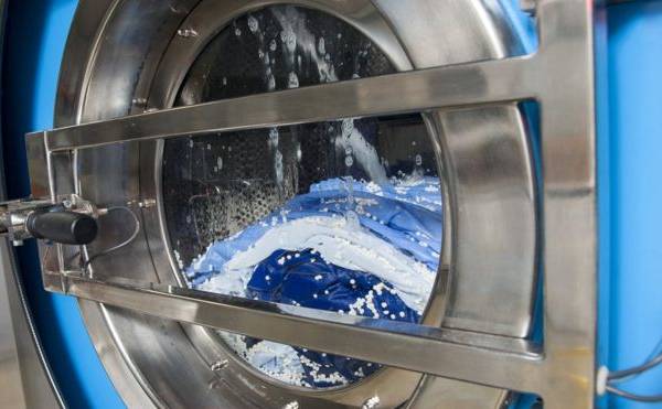 La lavadora comercial Xeros usa pequeñas bolitas de polímeros para quitar la suciedad de los tejidos.