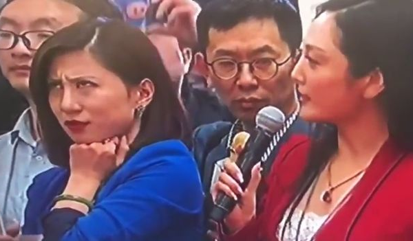 La expresividad de la periodista en cuestión, Liang Xiangyi, fue capturada por las cámaras de televisión y de los celulares de varias personas en la sala.