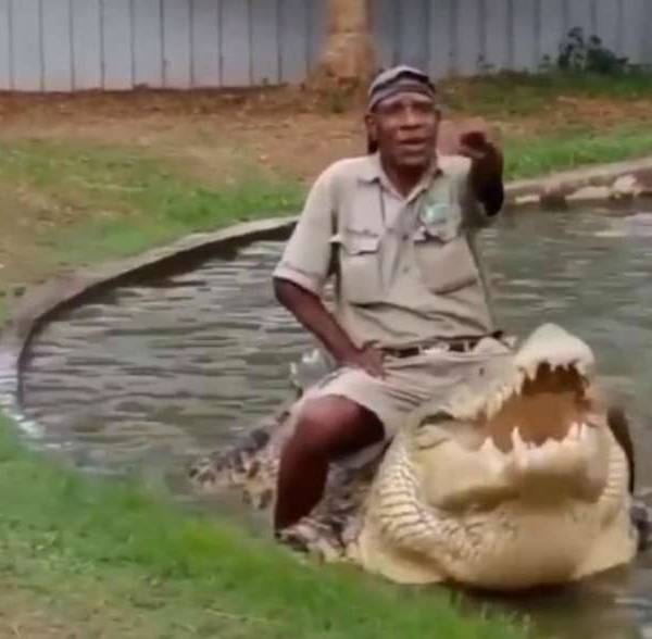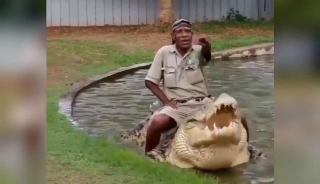 Según una nota de elcomercio.pe, todo empieza cuando el hombre ingresa al hábitat del reptil y da inicio a lo que sería el show de entretenimiento para los asistentes del parque.
