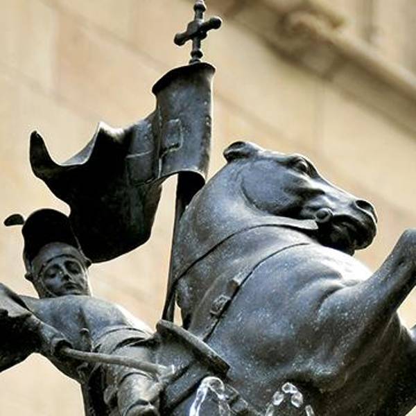Fotografía de una estatua que representa la leyenda de Sant Jordi.( )