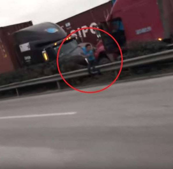 Entonces decidió abrir su puerta para bajarse del camión. Pese a que había una valla cerca, logró saltar rápido para librarse de un accidente que le pudo costar la vida.